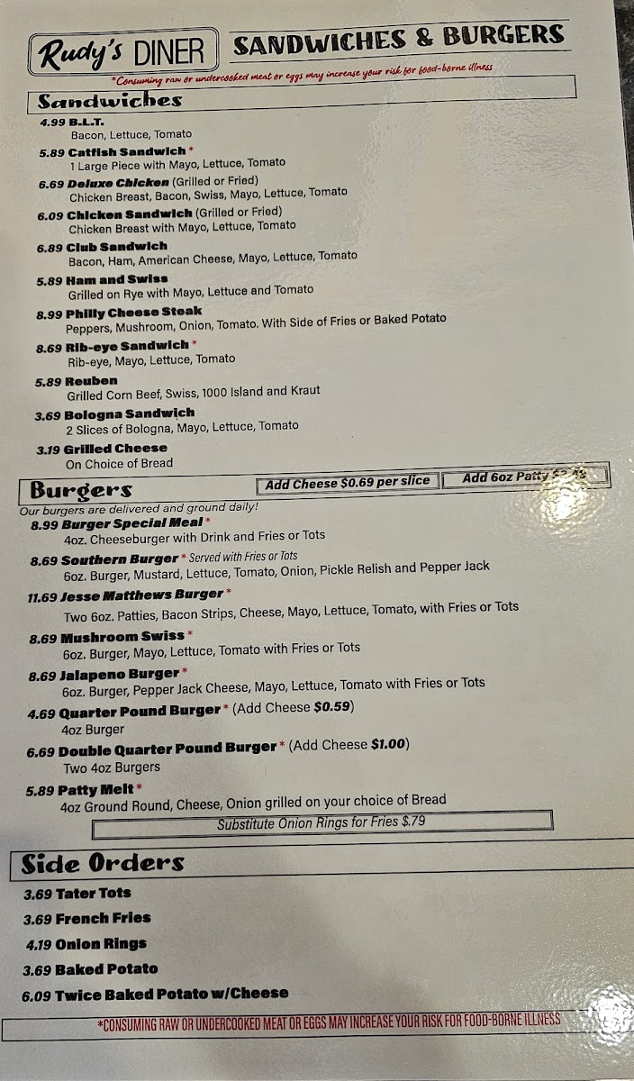 Rudy's Diner Menu